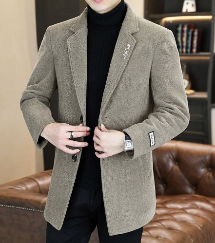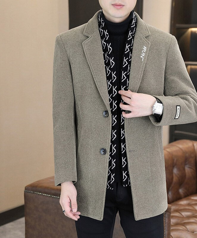 Erkek Kışlık Yün Kaban – Şık Fermuarlı ve Düğmeli Mont