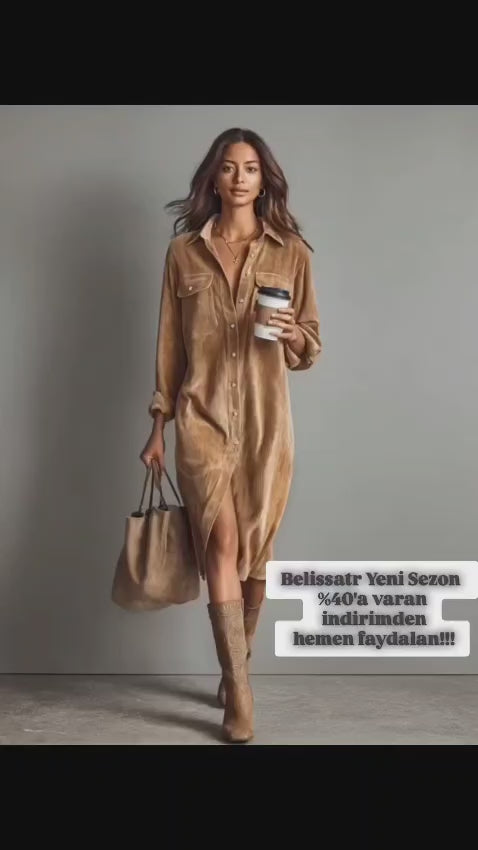 Belissa™ |Cepli Kadife Gömlek Elbise – Belissatr Casual Style