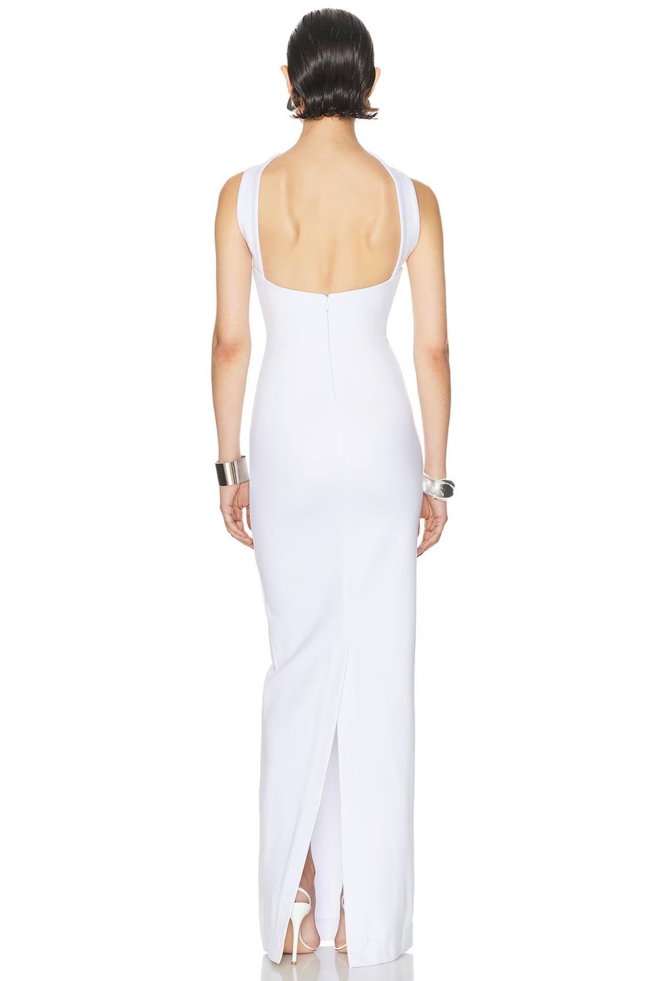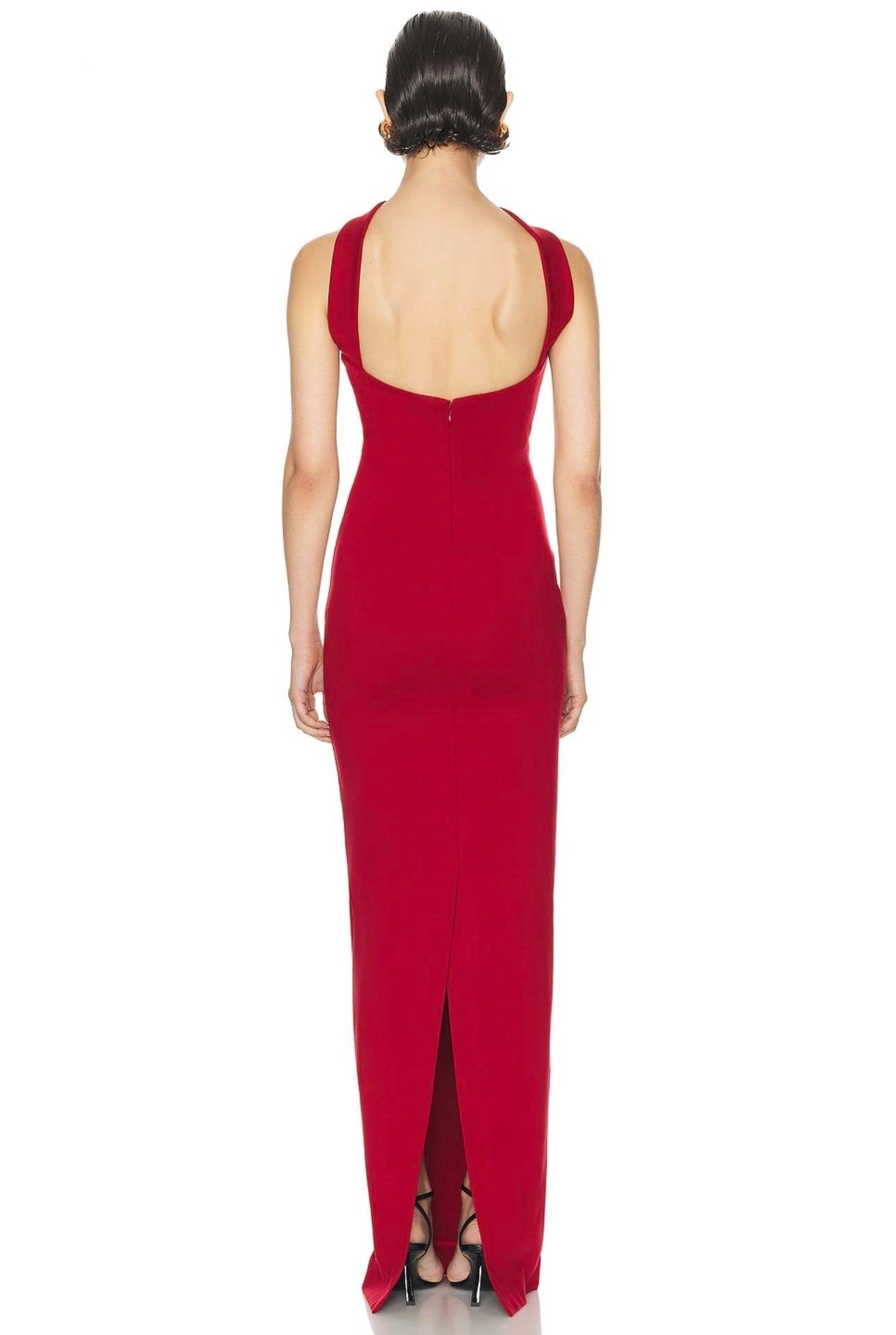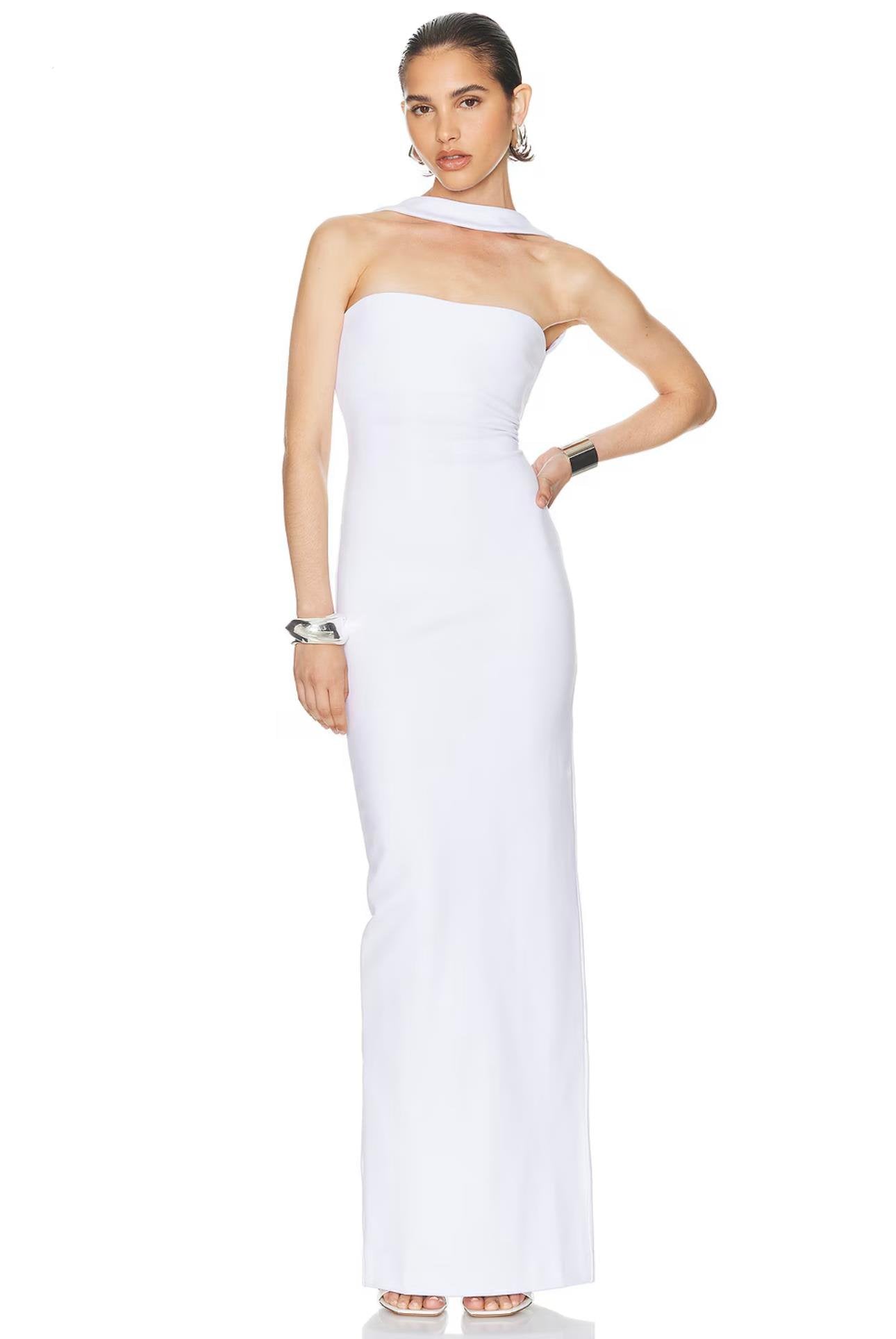 Boyundan Bağ Detaylı Straplez Kırmızı-Beyaz Bandaj Maksi Elbise