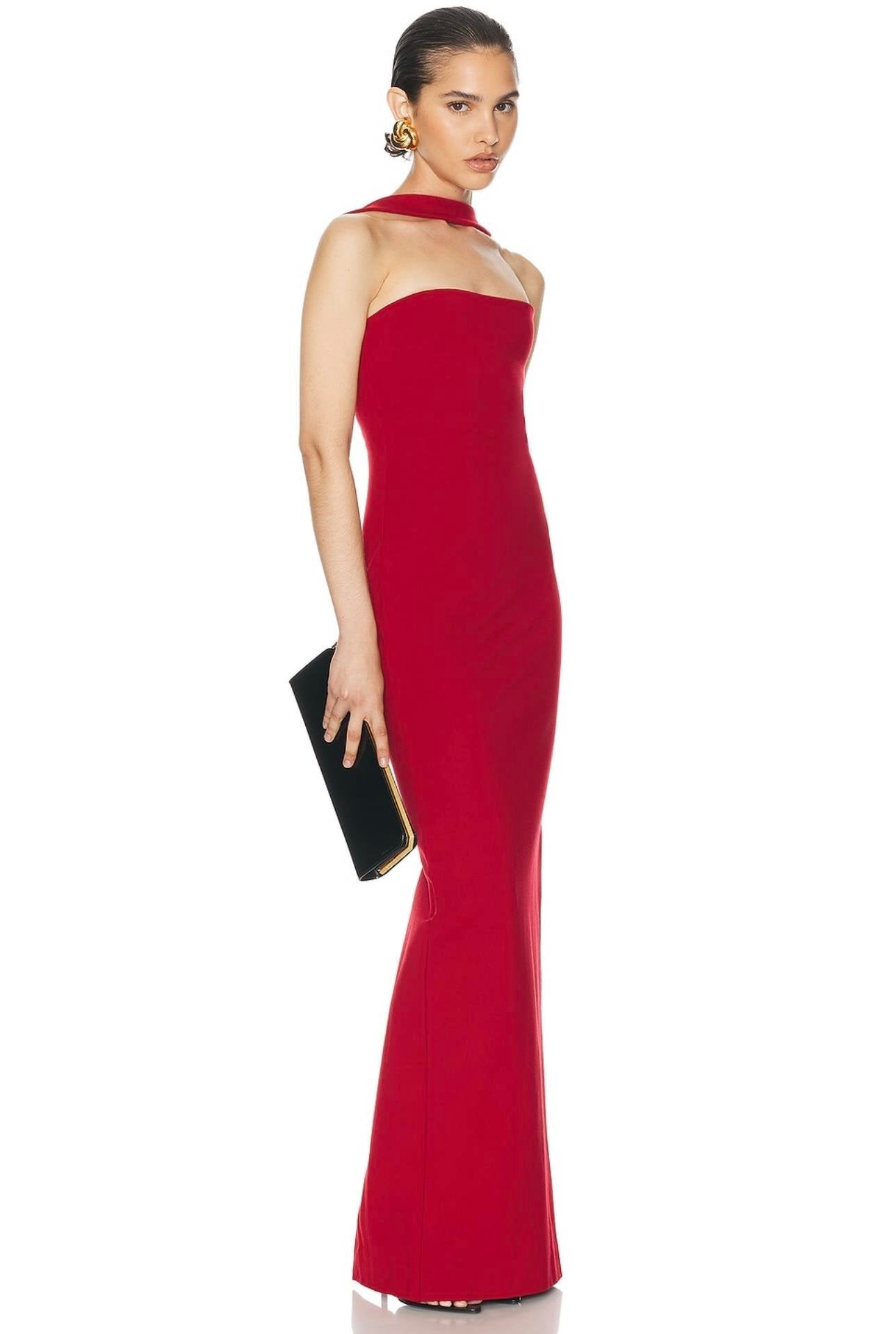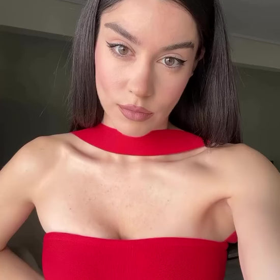 Zarafeti ve şıklığı bir araya getiren bu boyundan bağ detaylı straplez maxi elbise, özel günleriniz için kusursuz bir seçimdir. Vücudu saran modern kesimi feminen bir siluet oluştururken, boyun detayı tasarıma sofistike bir hava katar. Hem beyazın saflığı hem kırmızının iddialı duruşu ile davetlerden özel kutlamalara kadar her ortamda stilinizi öne çıkarır.
