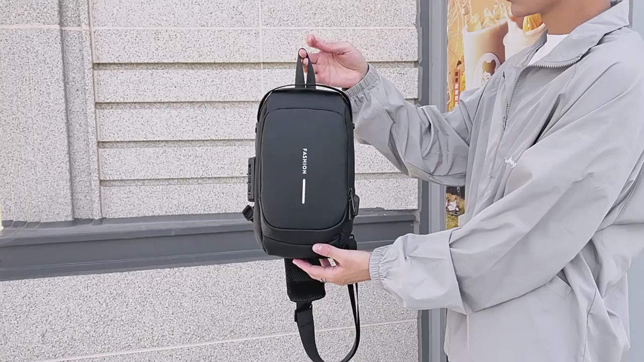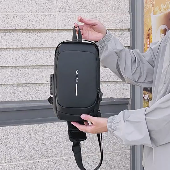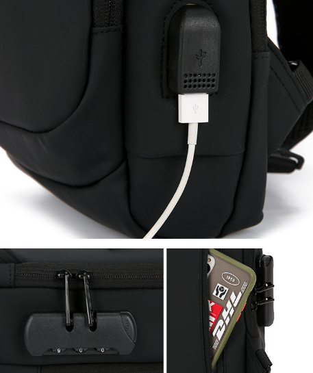 Erkek Şifreli USB Şarj Girişli Su Geçirmez Göğüs Çantası – Anti-Hırsız Tasarım