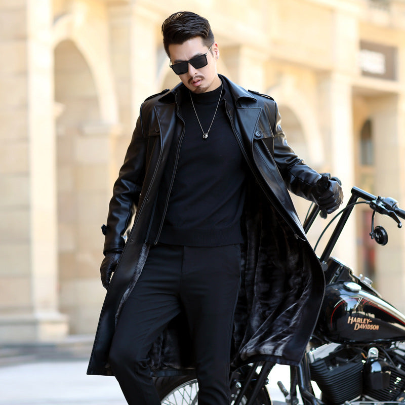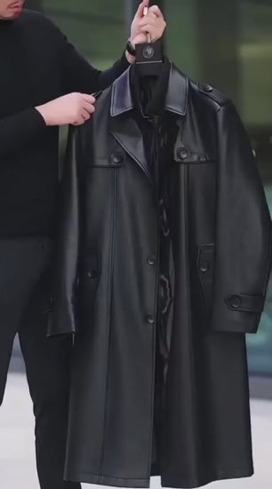 Belissa™ | Erkek Siyah Deri Uzun Kaban – Premium🖤