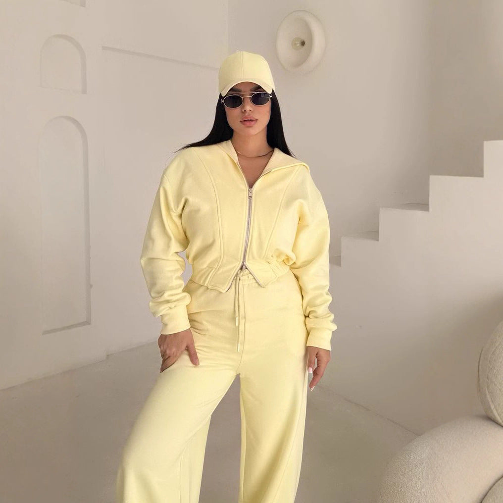 Belissa™ | Fermuarlı Crop Sweat & Geniş Paça Alt Takım