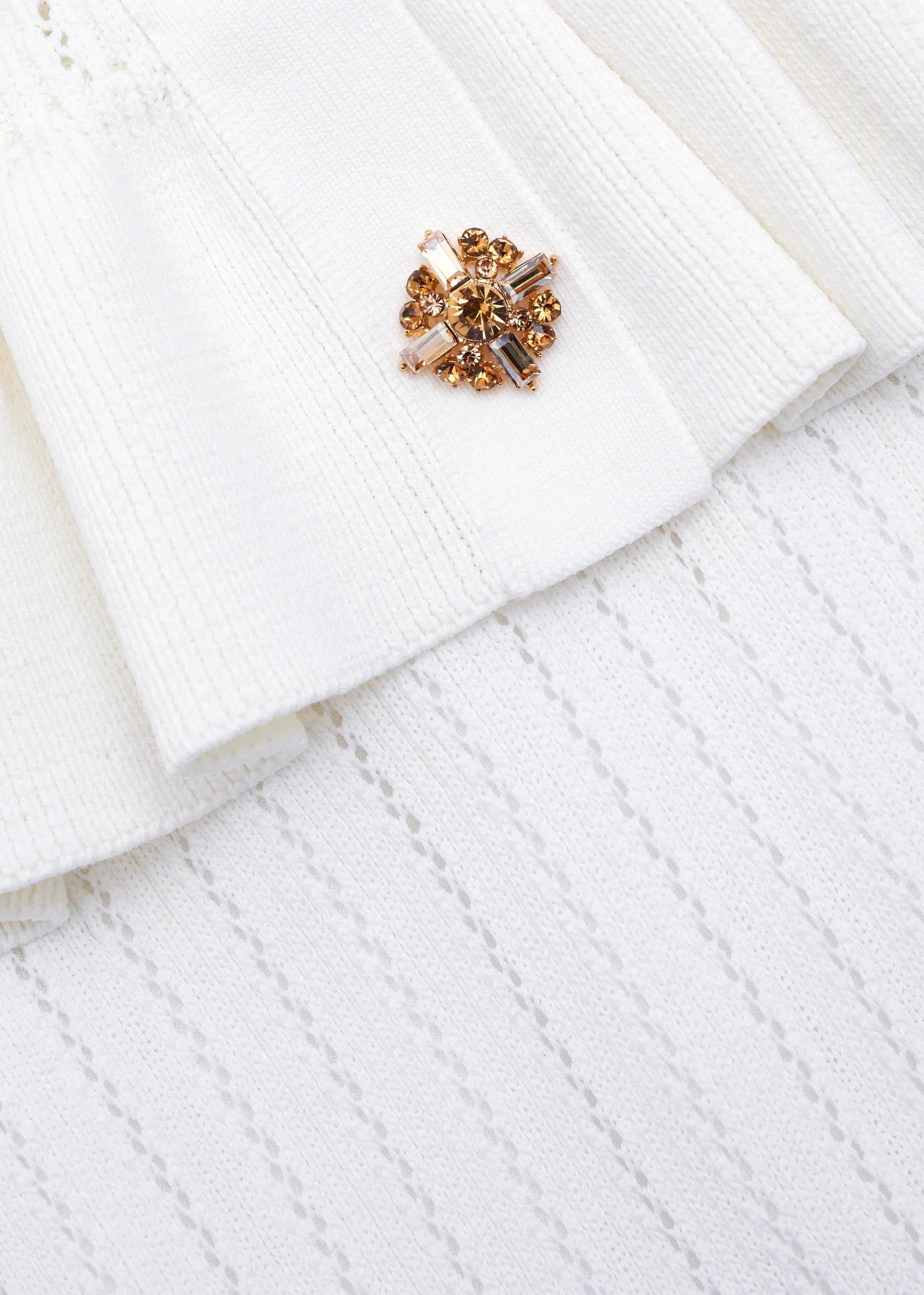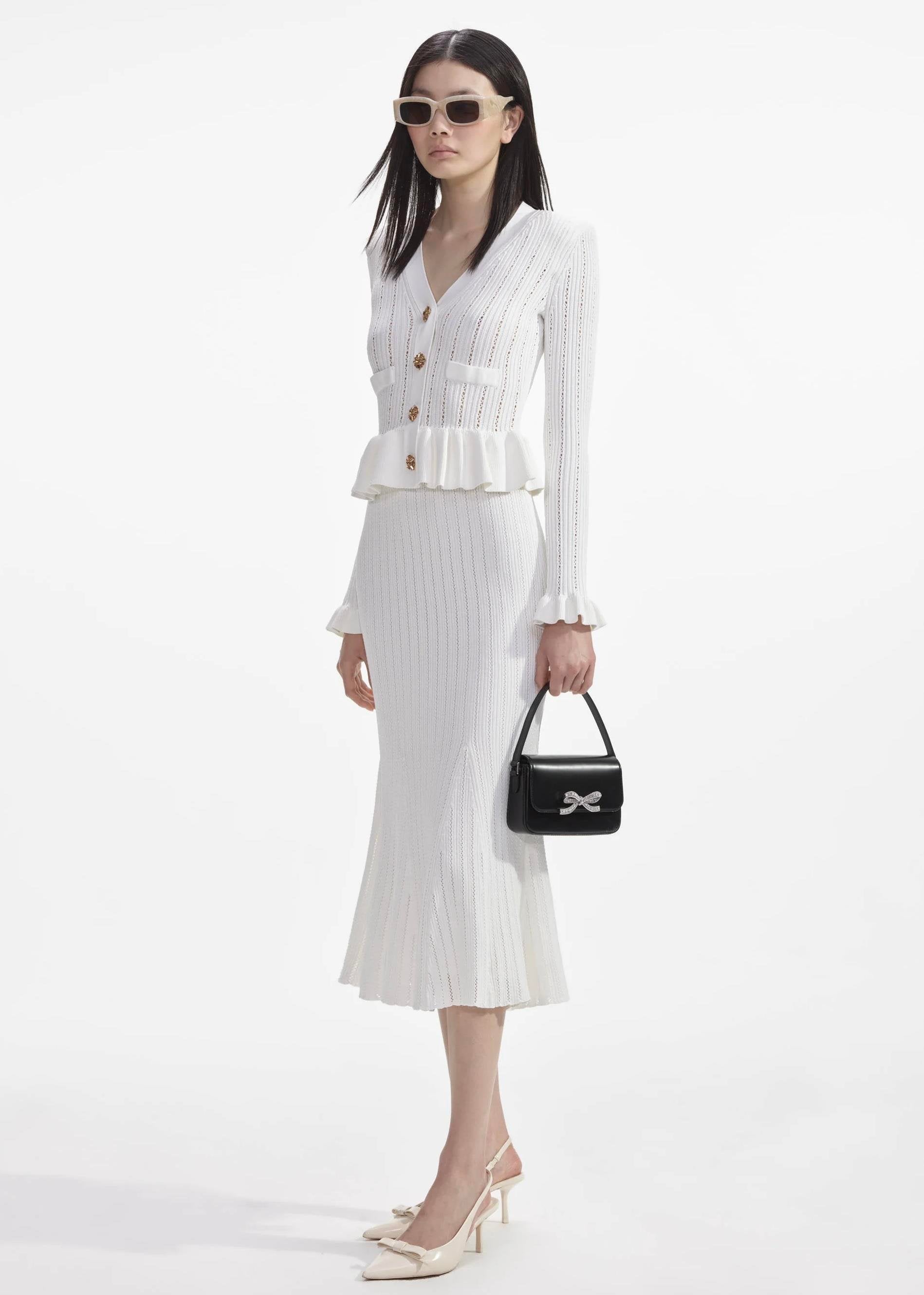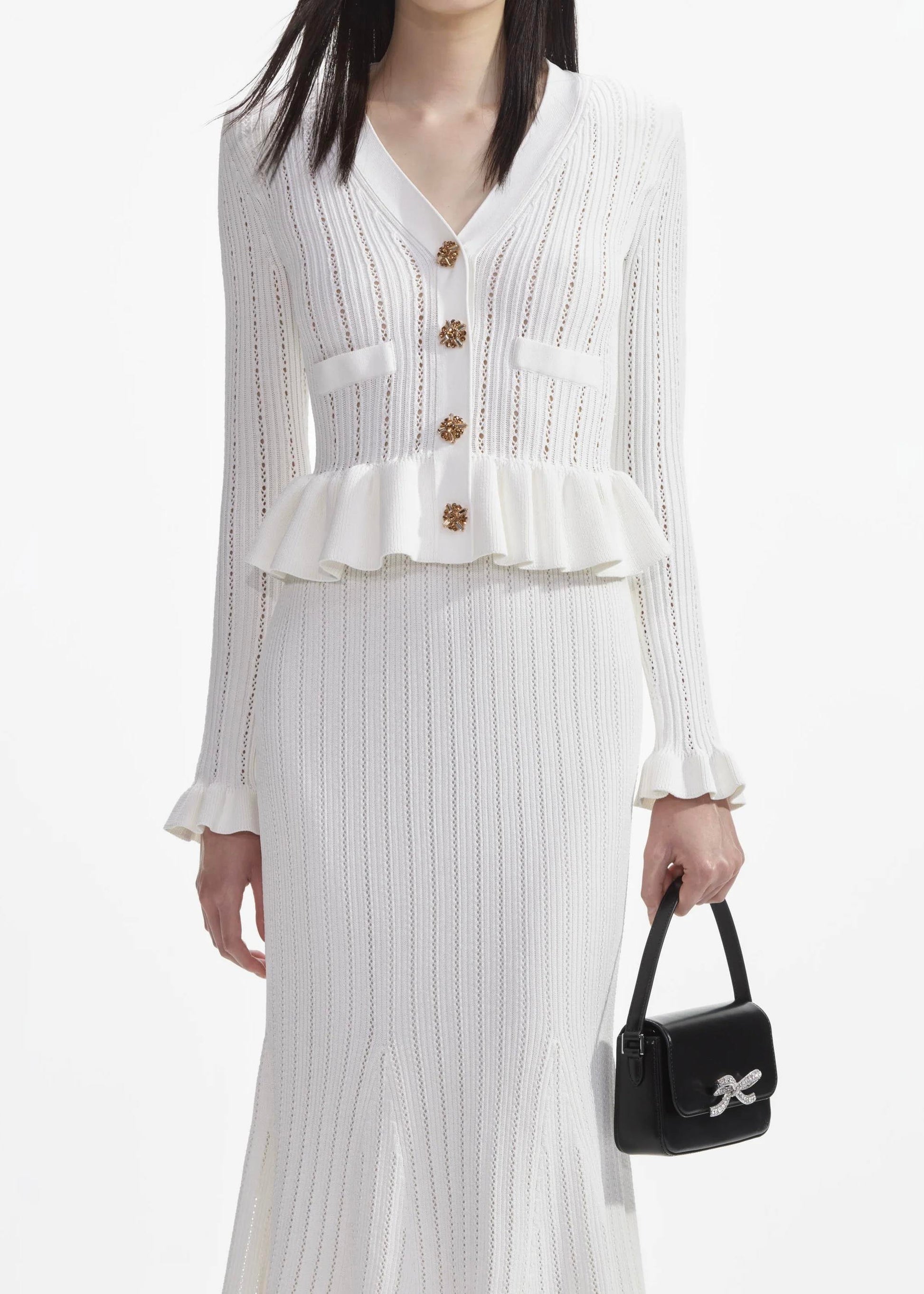 Gold Düğme Detaylı Beyaz Triko Midi Elbise