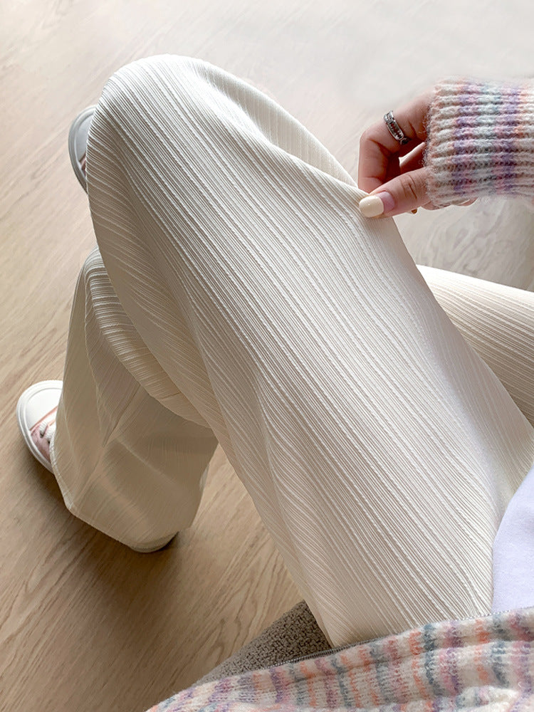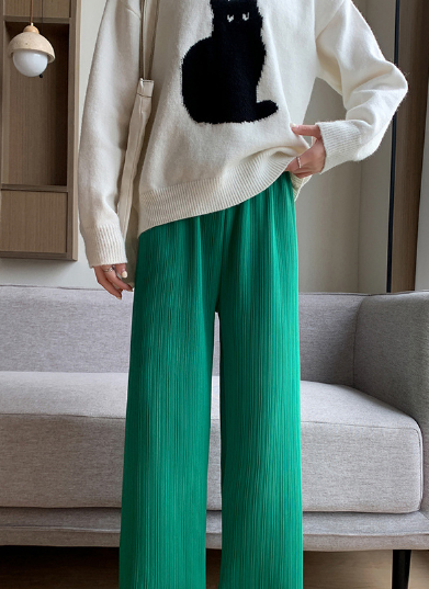 Modern Pliseli Doku: Kumaşın ince dikey çizgileri bacak boyunu uzun gösterir ve asil bir duruş kazandırır.