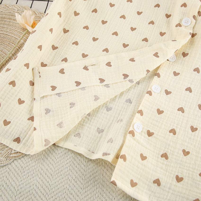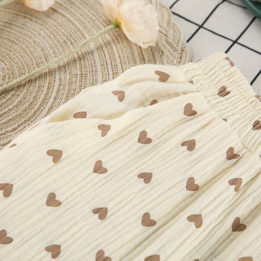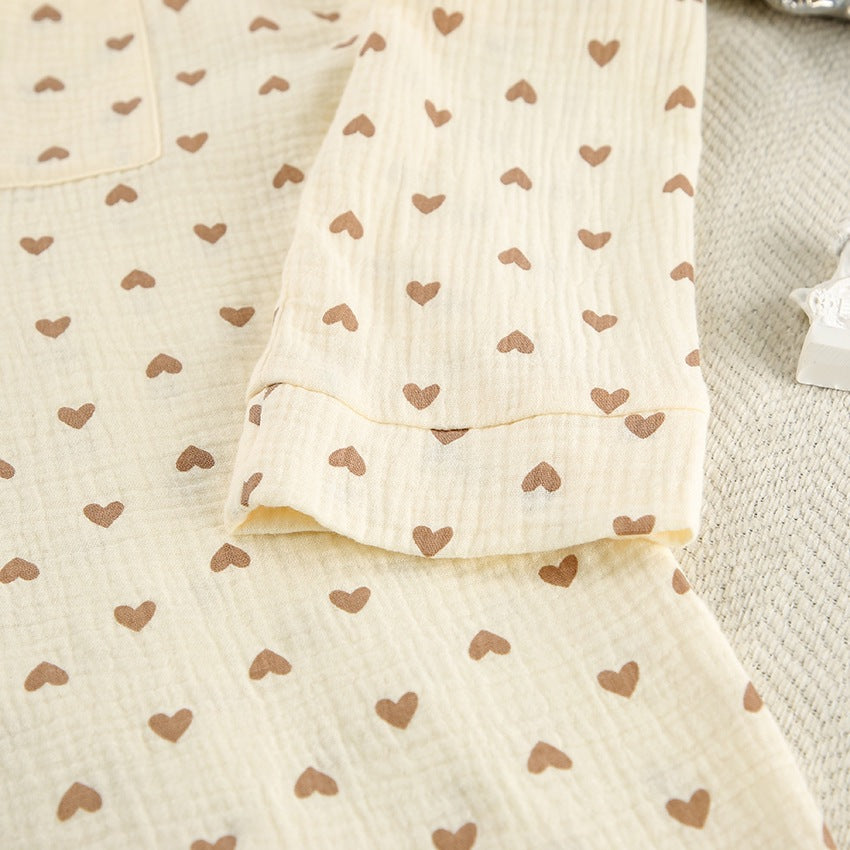 Belissatr™ | Kadın Pamuklu Kalp Desenli Pijama Takımı (Uzun Kollu Straplez Üst + Pantolon, 3 Parçalı Set)”