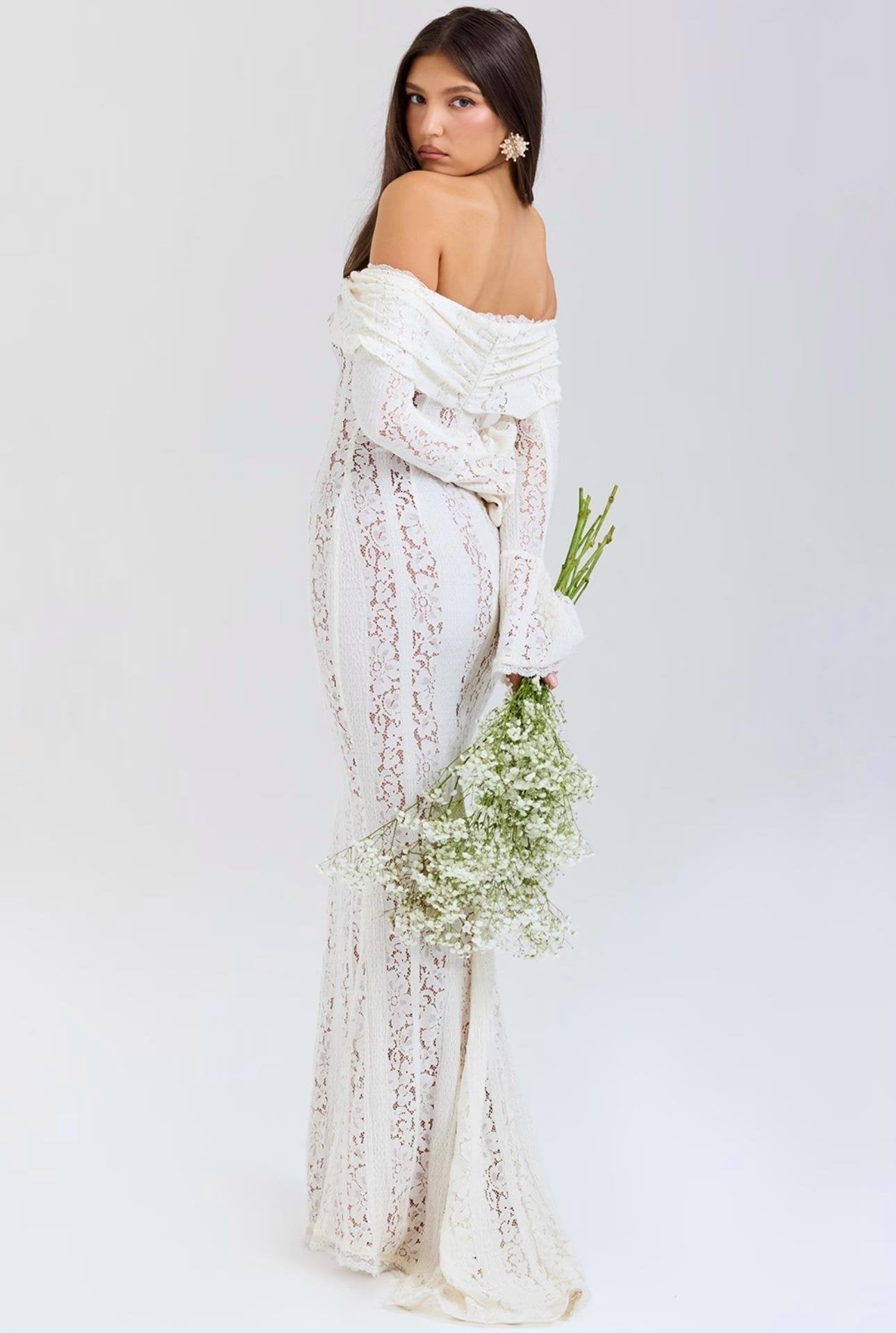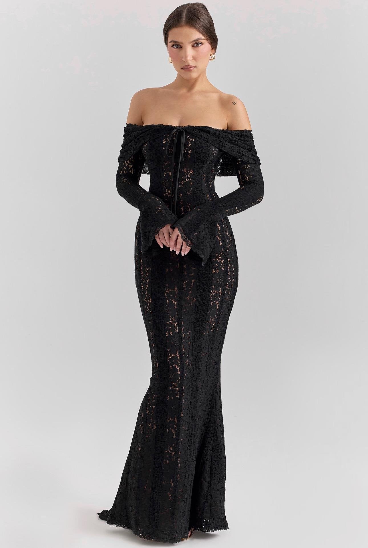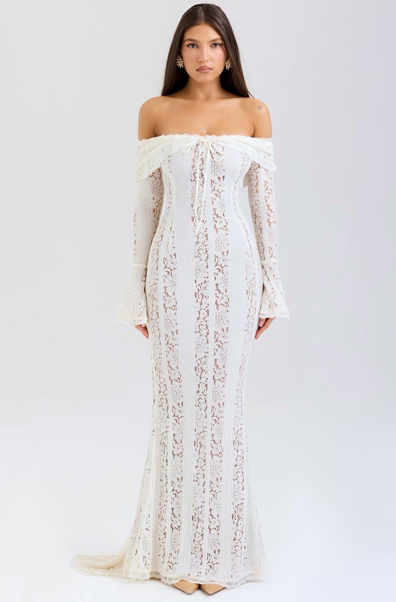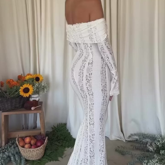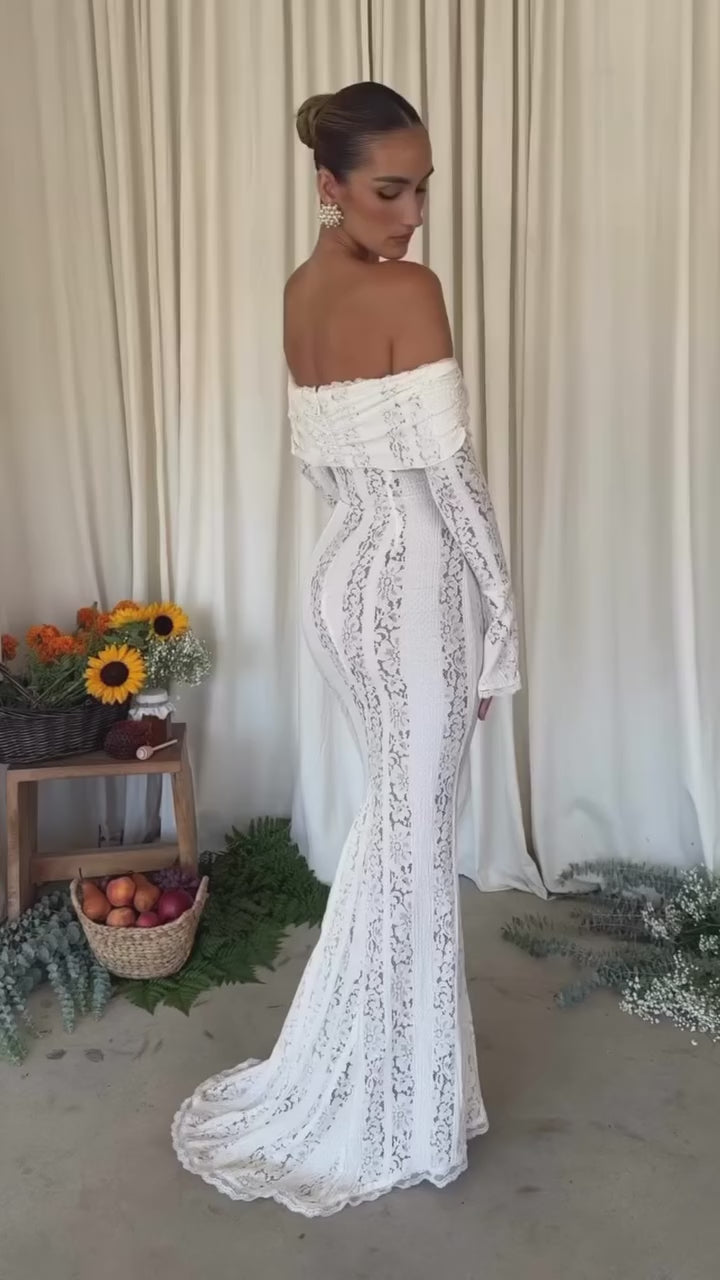 Şıklığı ve zarafeti bir araya getiren Madonna Yaka Dantel Maxi Elbise, romantik detaylarıyla göz kamaştırıyor. Göğüs kısmından aşağıya doğru inen vücuda oturan formu, feminen silueti ön plana çıkarırken; dantel dokusu elbiseye sofistike bir görünüm kazandırıyor.