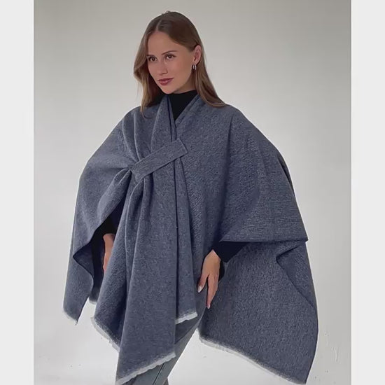Minimalist tasarımıyla her kombine uyum sağlayan bu panço, günlük stilinize zarif bir dokunuş katıyor.