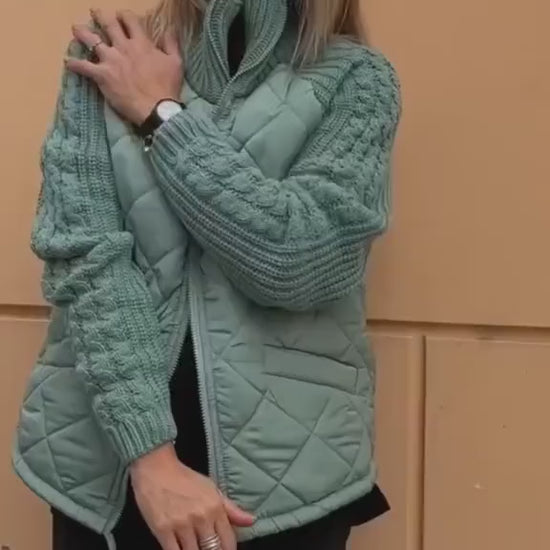 Belissa™ | Triko Kollu Kapitone Şişme Mont – Rahat ve Şık