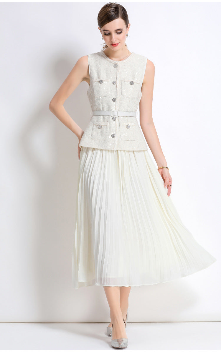 Tüvit Yelek ve Pileli Etek Takım