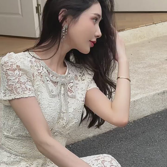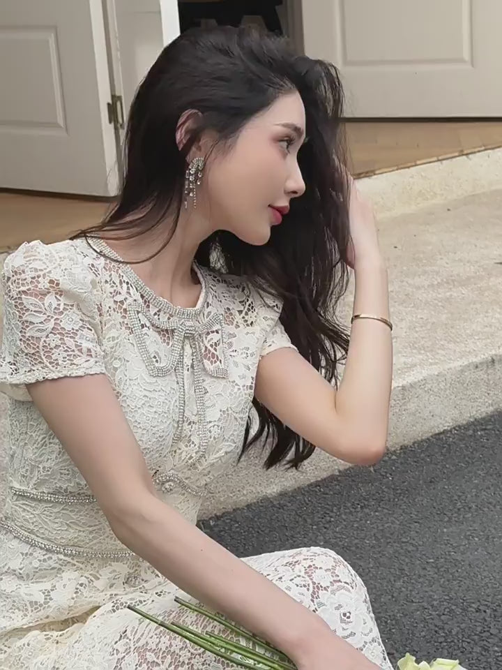🌸 Kristal Taş Detaylı Dantel Elbise 🌸